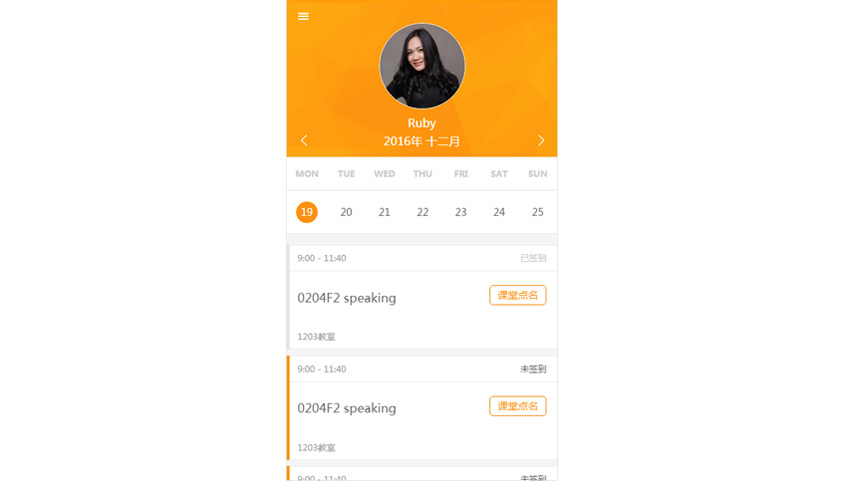 - 個(gè)人首頁(yè): 按周查看個(gè)人課程信息及簽到記錄、課堂點(diǎn)名(僅老師端)