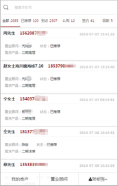 客戶信息審核:置業(yè)顧問在微信端接收到推送過來的客戶數(shù)據(jù),可根據(jù)設(shè)置的模式獲得客戶數(shù)據(jù),也可進行搶單,將客戶變?yōu)樽约旱母M客戶,進行客戶信息的初步審核。