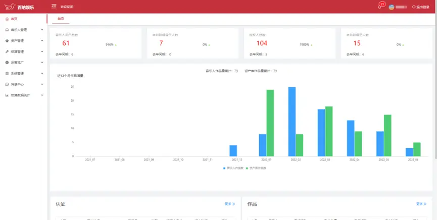 音樂人管理:注冊認(rèn)證、認(rèn)證審核、作品上傳、作品審核、授權(quán)簽約、藝人結(jié)算